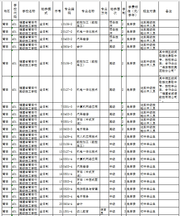 8、三明:福建省莆田市高级技工学校,为三年制中等职业学校其他类型招生志愿,属于第四类,可填报10个专业学校志愿。等普通高中录取结束后,再组织该校的录取。