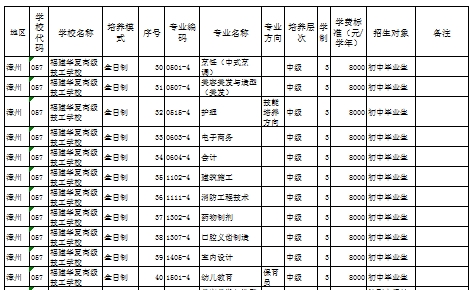 8、三明:福建华夏高级技工学校,为三年制中等职业学校其他类型招生志愿,属于第四类,可填报10个专业学校志愿。等普通高中录取结束后,再组织该校的录取。