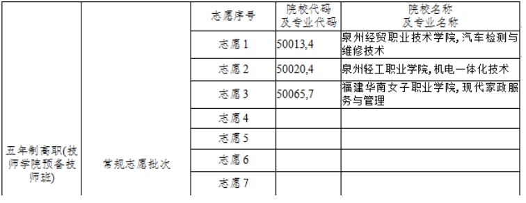本批次共有15个志愿,可以不填。如有意向就读我校的“3+2”五年制大专,可以按下图所示填报: