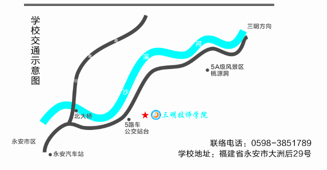 2、可乘坐班车在永安长途汽车站下车后,学院设有接待站点,届时有校车接送,或可直接乘坐5路公交车直达校门口;